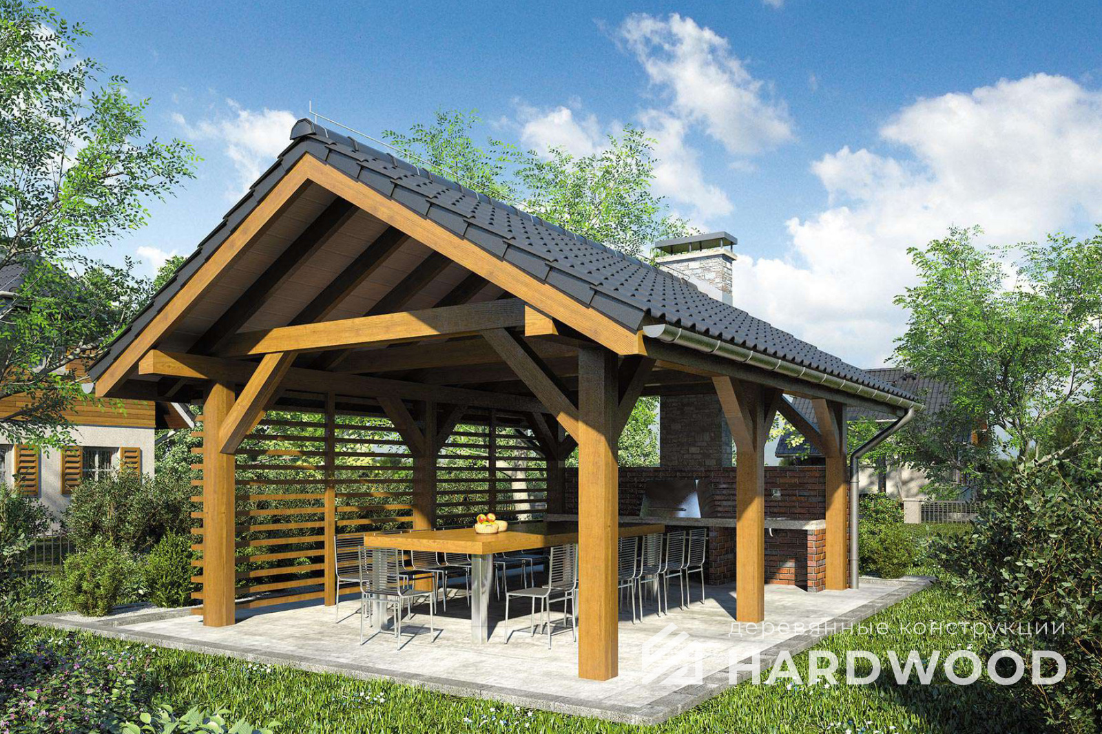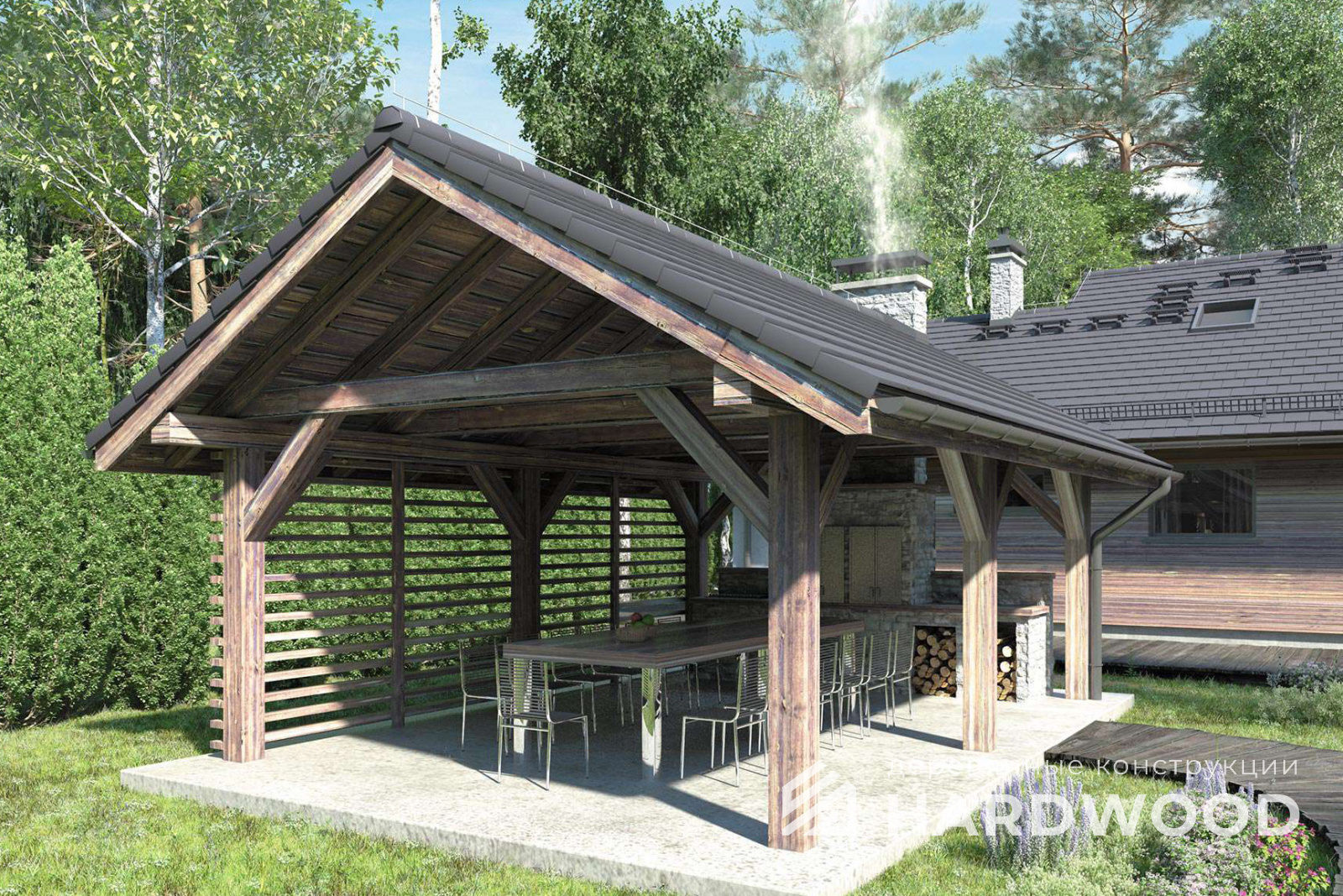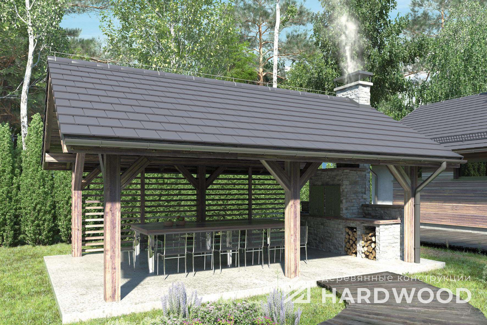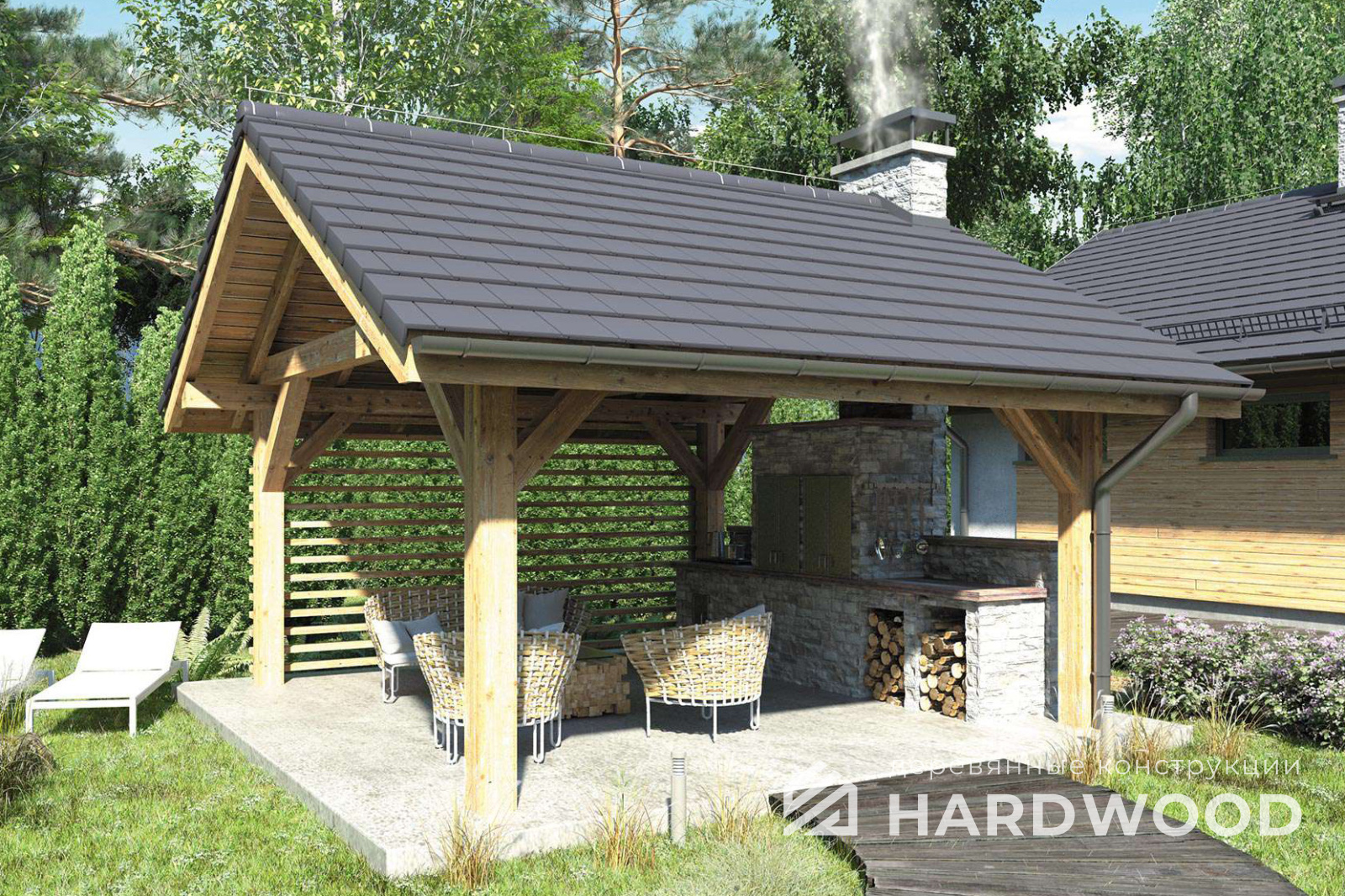 Деревянный авто-навес с зоной барбекю №115 - фото 880