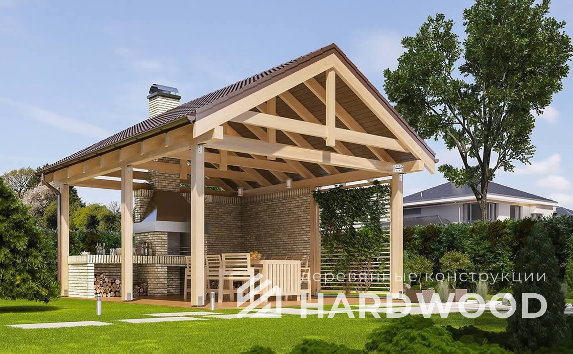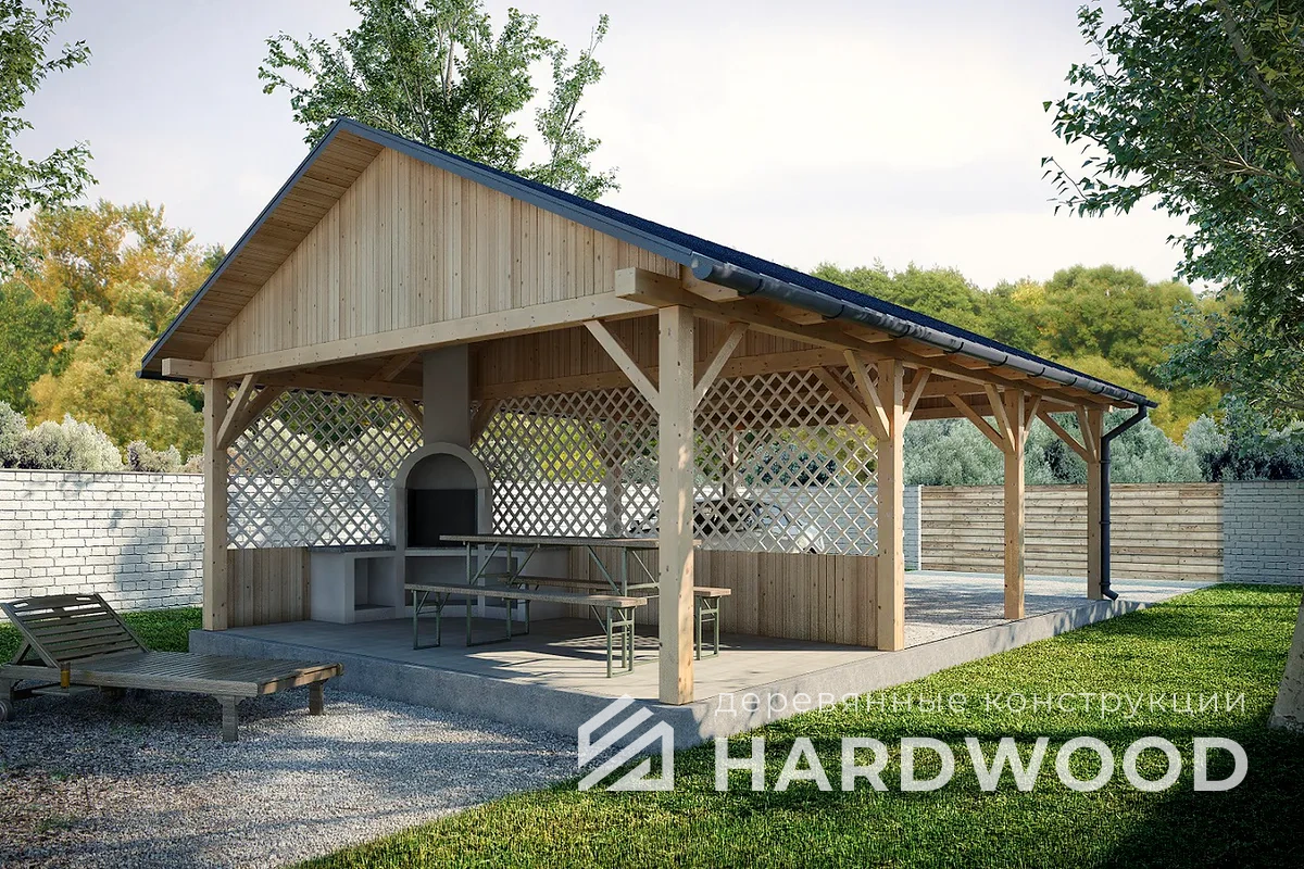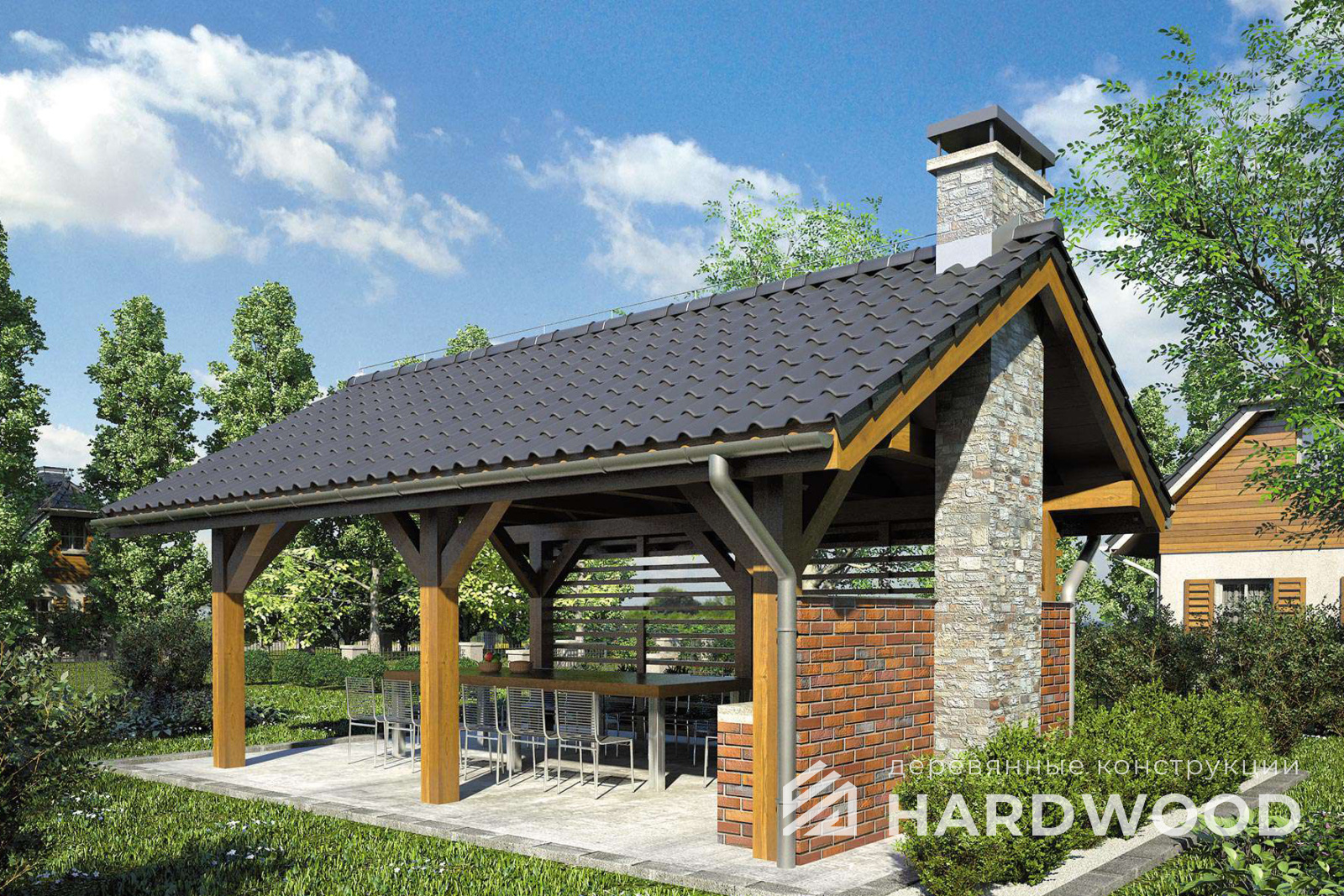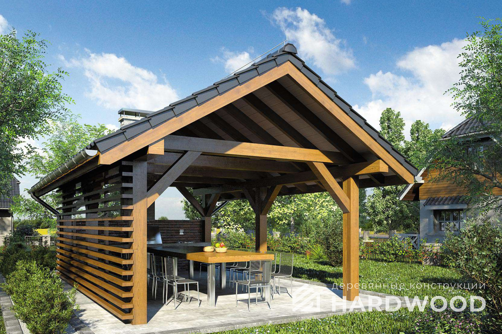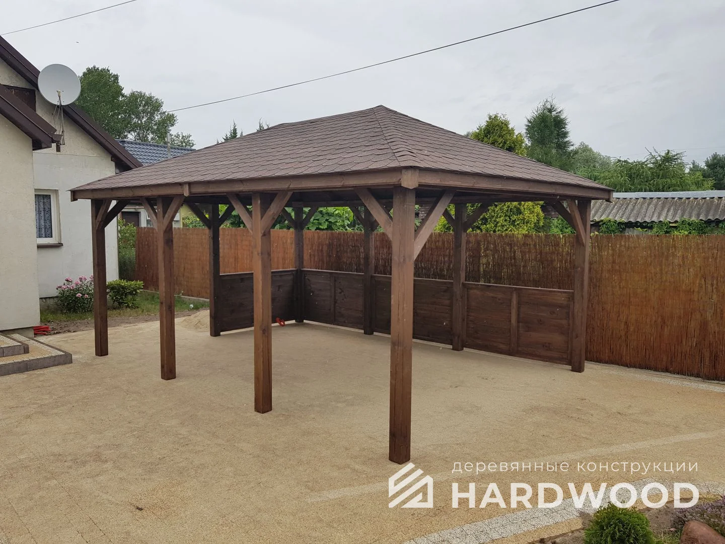 Деревянный авто-навес с зоной барбекю №115 - фото 880