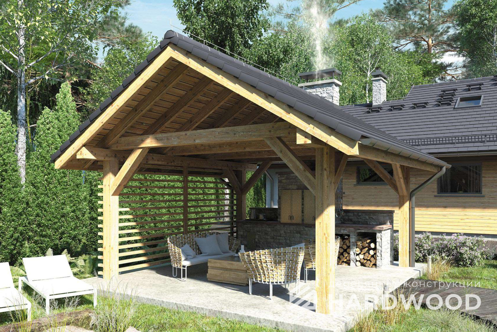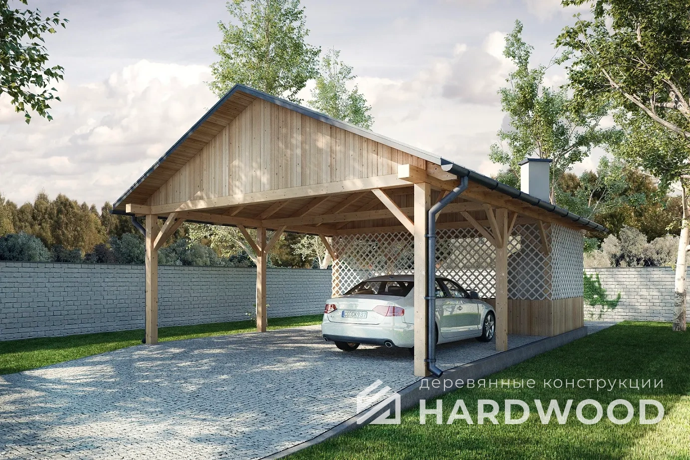 Деревянный авто-навес с зоной барбекю №115 - фото 878