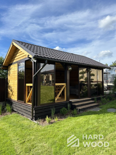 Лофт вырос из индустриальной эстетики: прямые линии, понятный каркас, фактура материалов на первом плане. В беседке это выражается в открытых балках, строгой геометрии, крупном остеклении и функциональности каждой детали. Никакой визуальной «тяжести» — только то, что работает на комфорт и стиль.